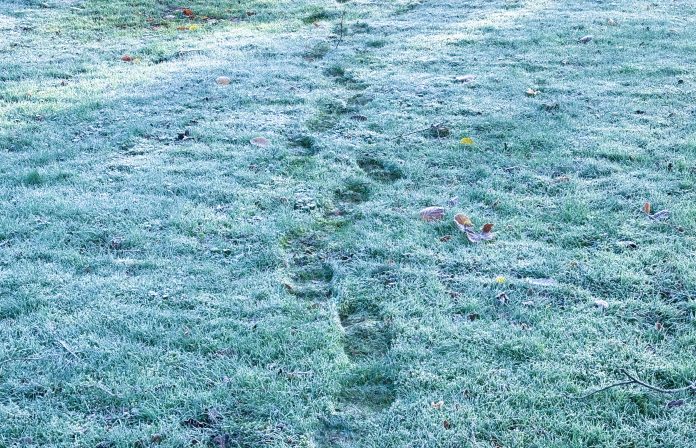 If you accidentally damage your lawn by walking on it during frost, follow these steps in spring: