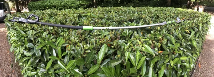 Those tall hedges, and worse still those extra wide hedges off of a tripod ladder, were starting to take their toll on my body. I’d been using cheap Chinese two stroke multi tools with extension bars and they were reaching end of life, as were my shoulders. It was time for a change and I thought that a switch to battery machines might tick both the health and environment boxes in one go. It came down to a choice between Stihl and EGO but the single battery system from EGO rather than the two battery system of domestic and pro from Stihl closed the deal for me. It then came to a choice between the multi tool with extension bars or the single extendable pole system. With a four meter reach without having to fix on another bar the PPX1000 extendable pole just edged it.