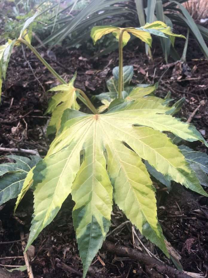 Fatsia japonica camouflage is easy to grow providing you get a few things right. First it must be in the right position. They like indirect sunlight but not direct sunlight. So it needs to be in a bright position but not exposed to full sun. Corners are a good place, where the sun cannot get to burn the leaves.