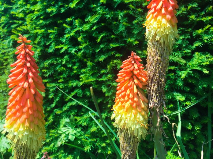- Kniphofia ‘Tawny King’ – Produces apricot and cream-colored flowers.